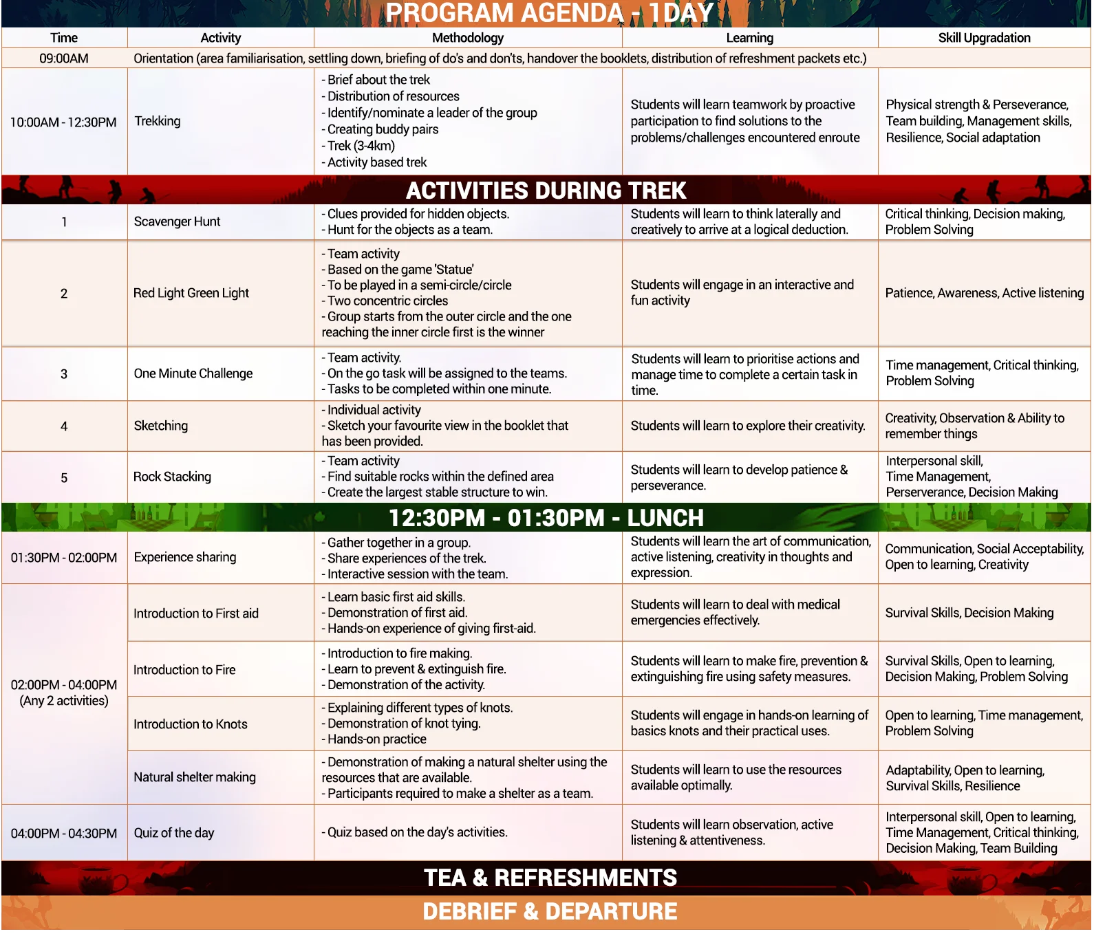 - A training program built to equip students with basic life skills, survival skills, team spirit and more.